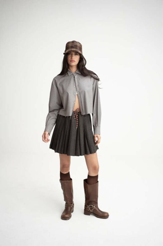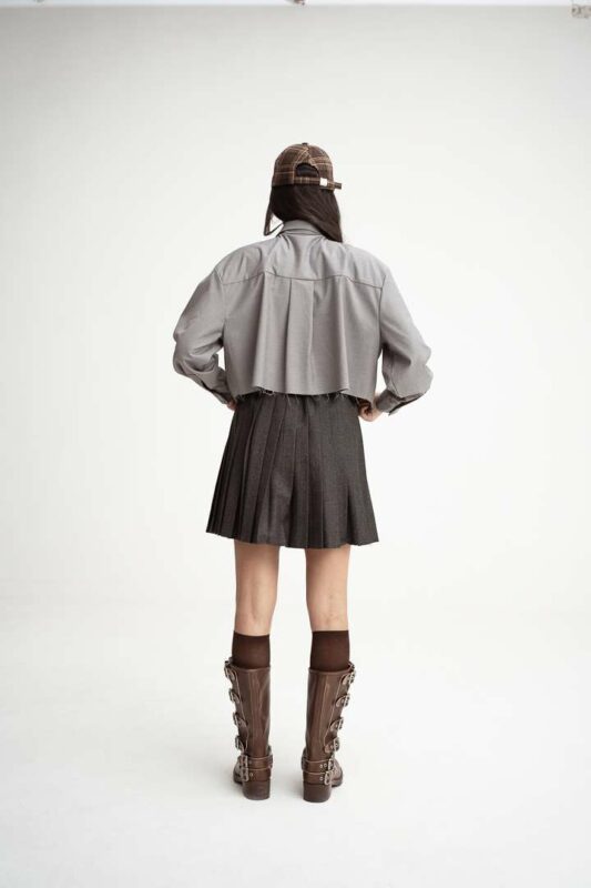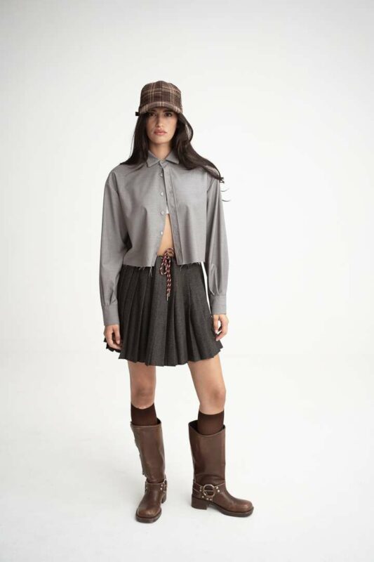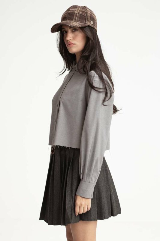 חולצה קצרה מכופתרת עם כפתורים בצד הקדמי.בגב החולצה קיים כפלים לאורך,צווארון קלאסי שרוולים ארוכים.