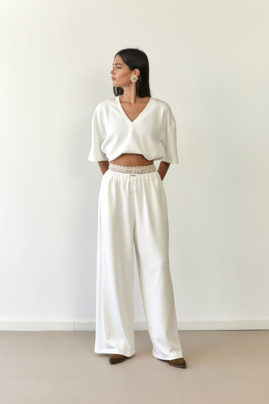 חולצה בגזרת T ומפתח וי מבד ריב נשפך עם מגע נעים ורך.