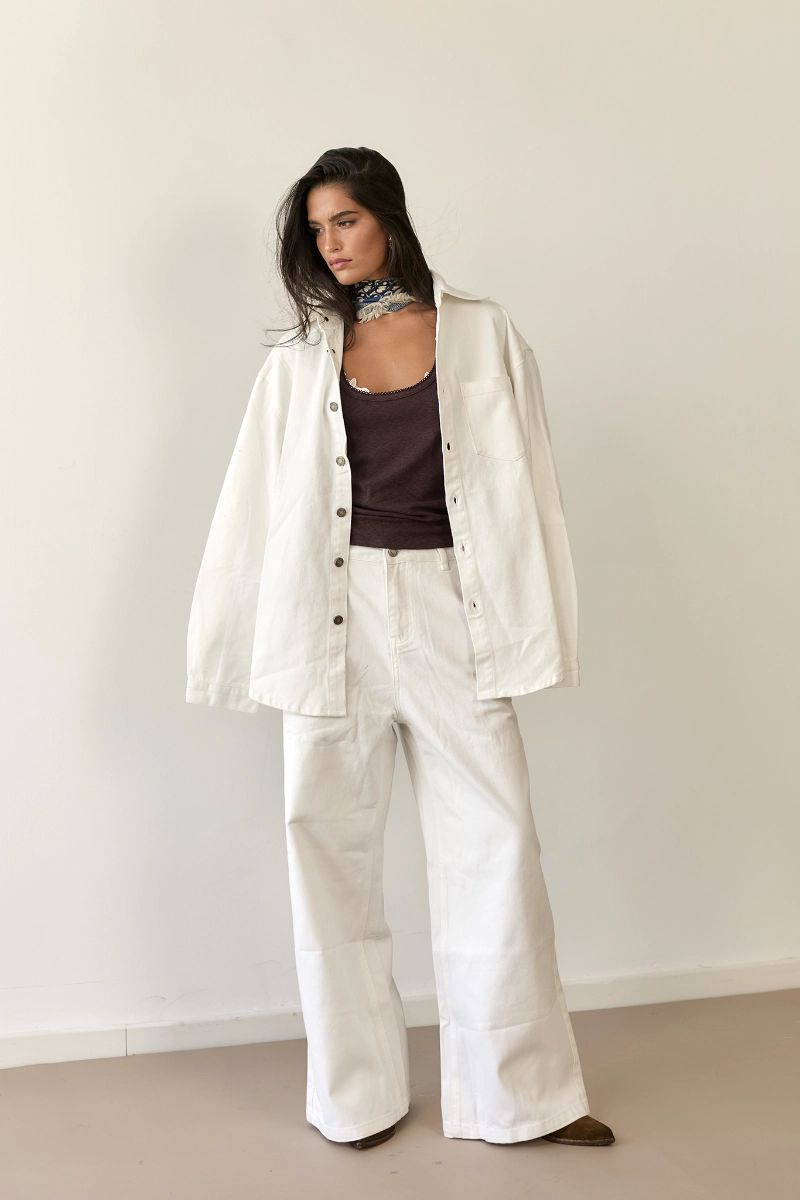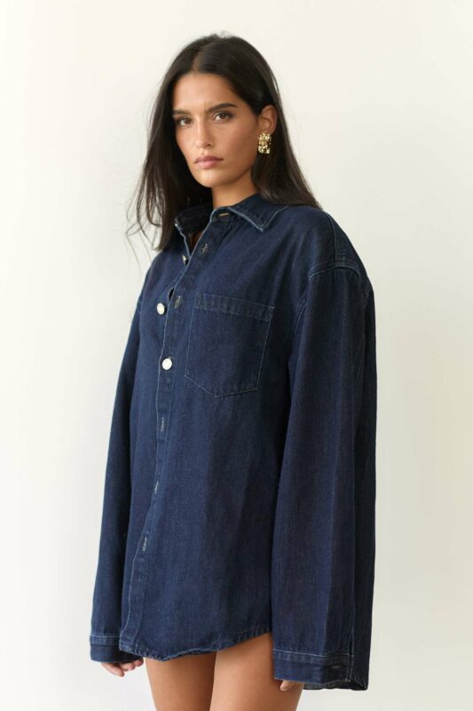 גקט/חולצה במראה אוברסייז רפוי ונינוח עם שילוב כפתורים מתכתיים לאורך להוספת סטייל.