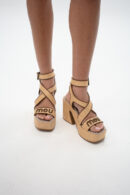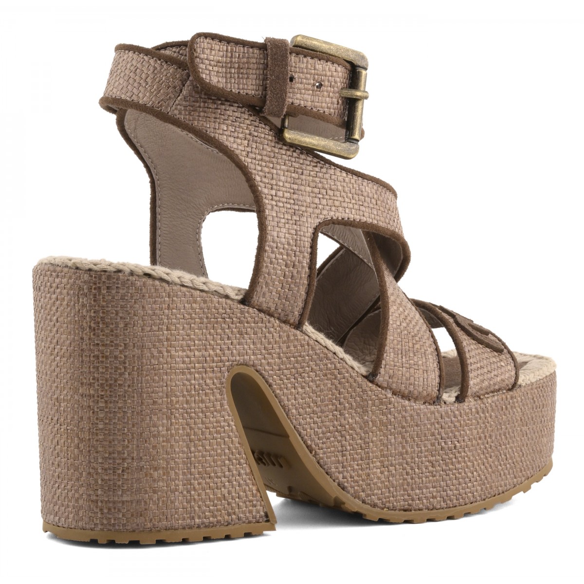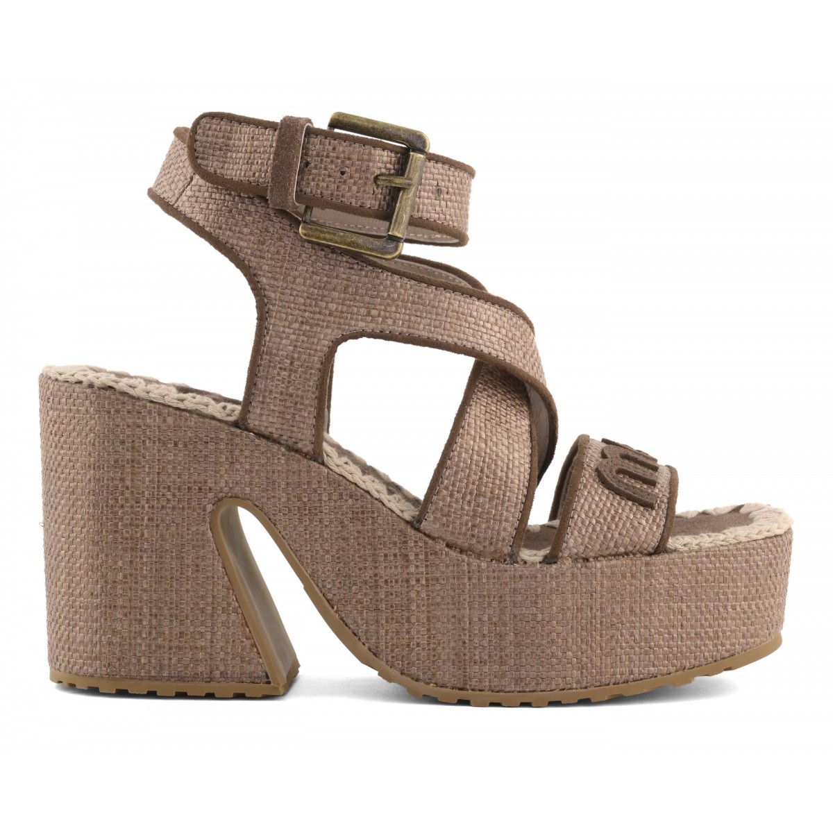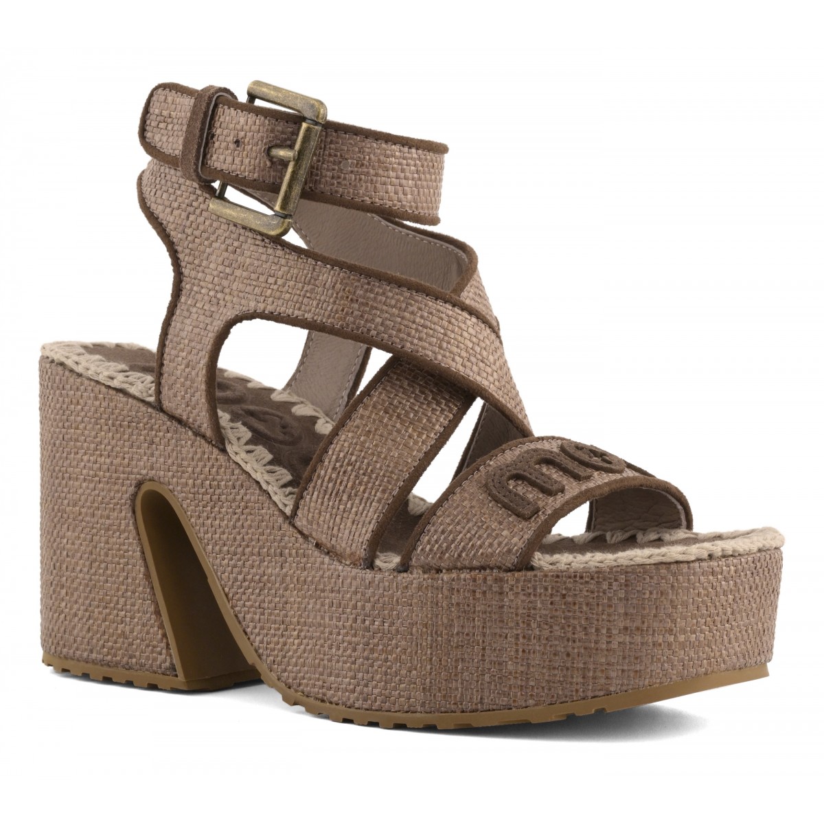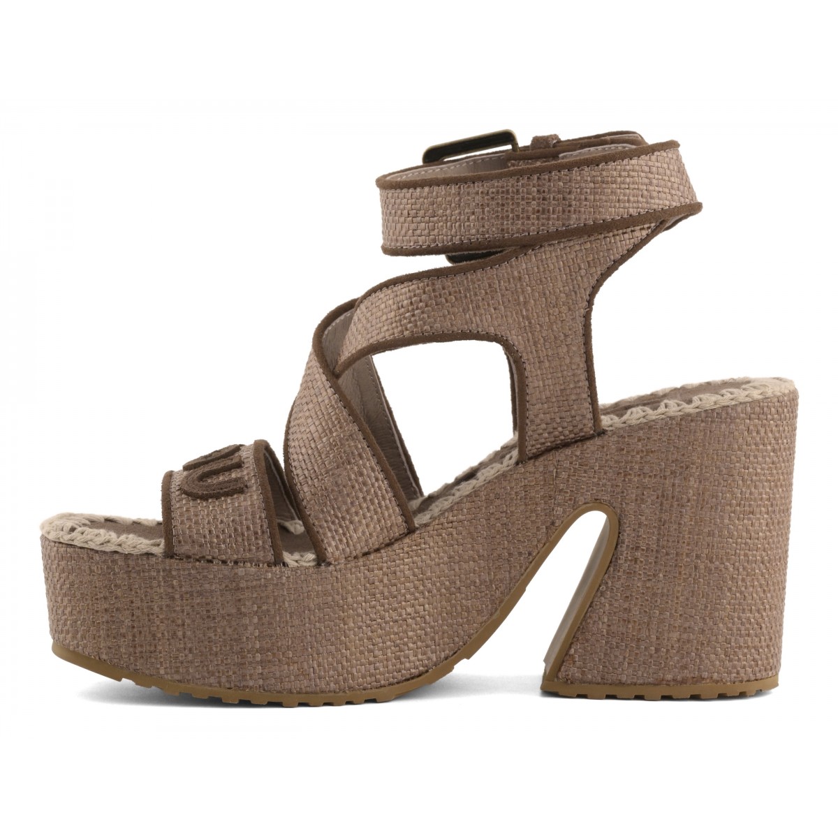 MOU פלטפורמה רפיה עם רצועת קרסול מפותלת ורצועת קרסול אחורית.
