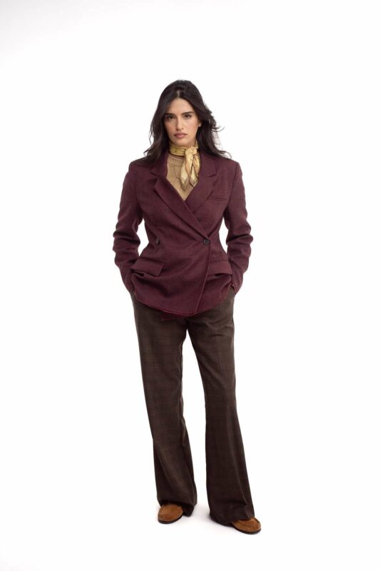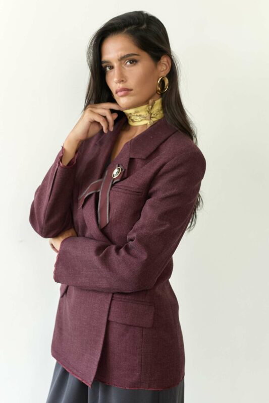 ג'קט בגזרה מחוייטת הדגשת מותניים שמותאם למבנה המותן,היוצר מראה אלגנטי SLIM FIT צמודה.